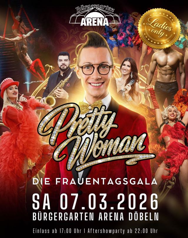 Mit „Pretty Woman“ startet am 07. März 2026 in der Bürgergarten Arena Döbeln ein neues Veranstaltungsformat, das den Frauentag auf besonders elegante Weise neu interpretiert. Das Projekt verbindet erstmals klassische Frauentagsfeier mit dem Anspruch einer hochwertigen Dinnershow.